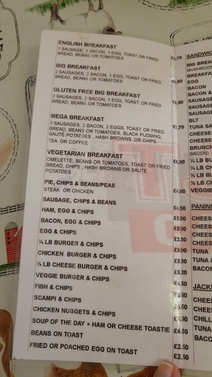 Guests can enjoy classic breakfast dishes like omelettes and the satisfying Mega Breakfast, ideal for starting the day with something substantial. For a midday or afternoon visit, there's a selection of sandwiches, paninis, and jacket potatoes with comforting toppings that feel just right with a French press coffee or a creamy milkshake. Smoothies add a fresh option when you're after something lighter.